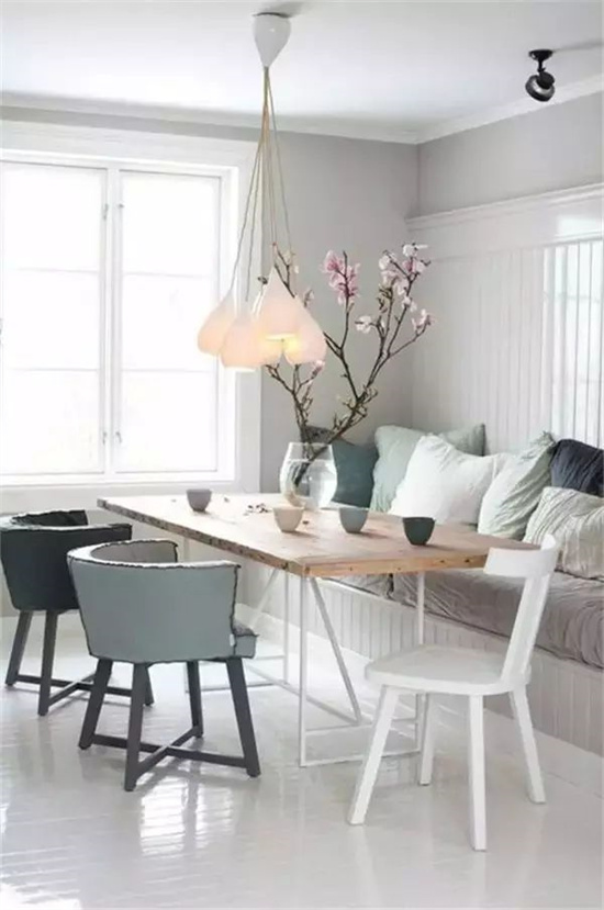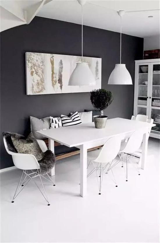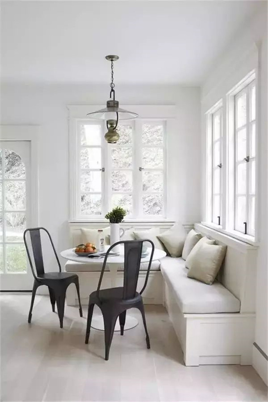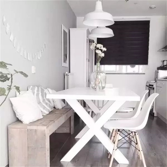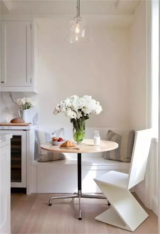 洁白色墙面和白色餐桌
