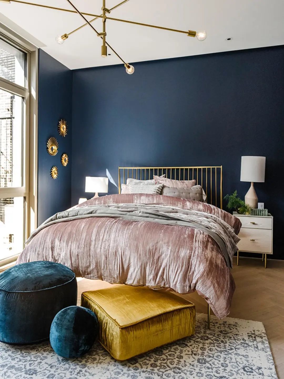 铁艺床,简约线条,镀黄铜色,会有一种又现代又高级的效果。