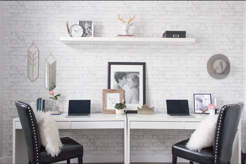 在书房放置两人合照,或设置置物架层板,摆放纪念小物装饰空间,用心妆点每个角落,工作之余不枯燥乏味,也是种精神调剂呢!