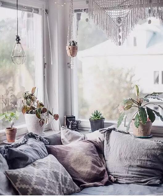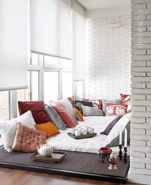 休息室嘛,自然怎么舒服怎么来。可以把沙发搬过去一个,甚至直接在地上摊一层被褥,堆满软软的垫子,或躺或坐,不能更美啦~