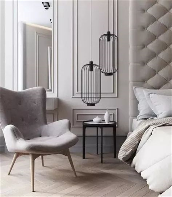 北欧风格卧室特征:简约、颜色以黑白灰为主,整体追求线条的简约、经常运用原木元素和不规则几何元素。选择背景墙时要符合北欧风格的特征。