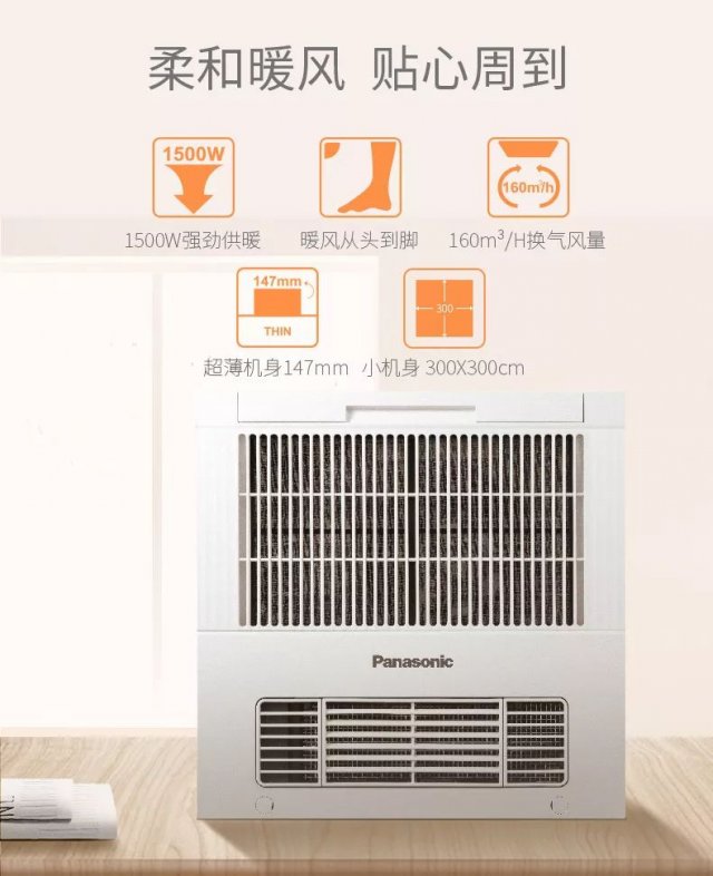 稍小一些的机型,例如松下这款,换气量也能达到160m3/h