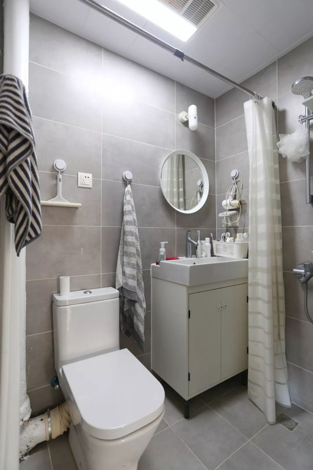 这个面积的卫生间,也就勉强转动身子而已,想做干湿分离,根本就是天方夜谭。