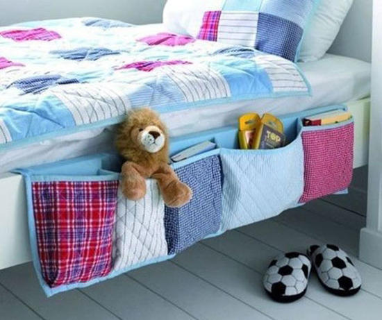装园艺工具的帆布袋经过一点微小改动后成为孩子们的画笔收纳袋,尼龙搭扣的设计让袋子伏贴于桌子旁边,从此宝贝儿的画笔就不会再到处乱滚了。