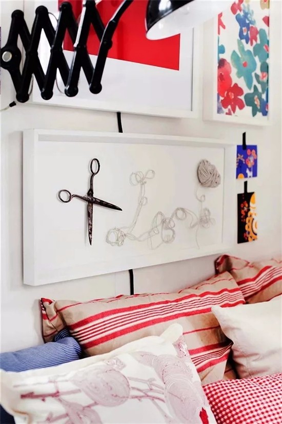 卧室还是蛮有格调的,风格和颜色与客厅一脉相承。远远地看,少许的红与绿显得无比明快。